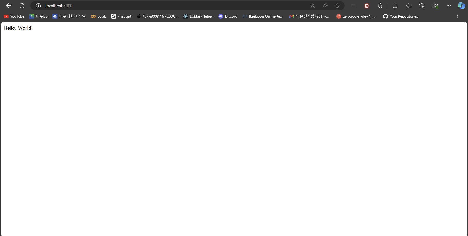 http://127.0.0.1:5000이나 localhost:5000으로 접속하면 아래와 같이 서버가 실행된 것을 확인할 수 있다.