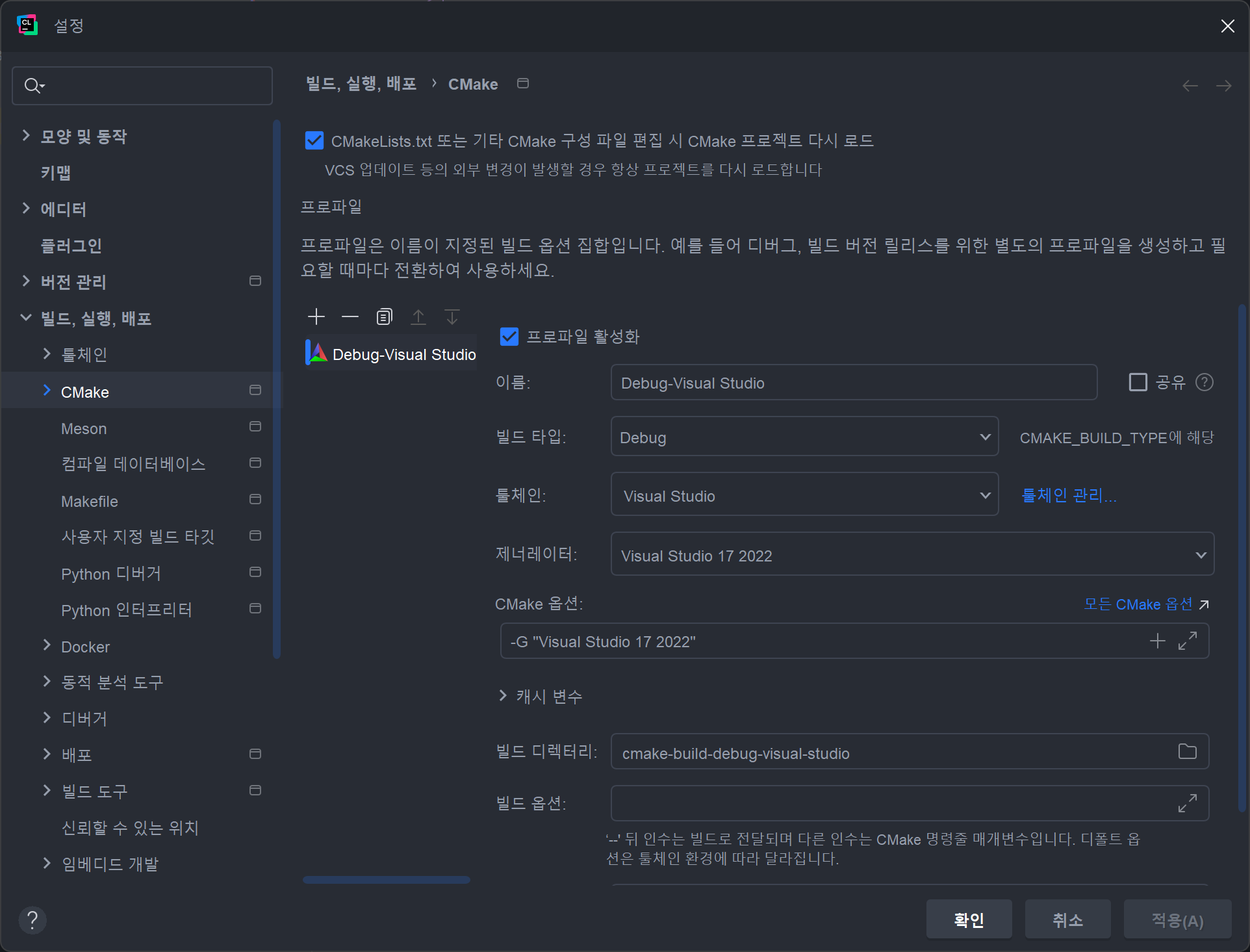 설정은 간단하다. 우선 CMakeLists.txt를 수정한다.