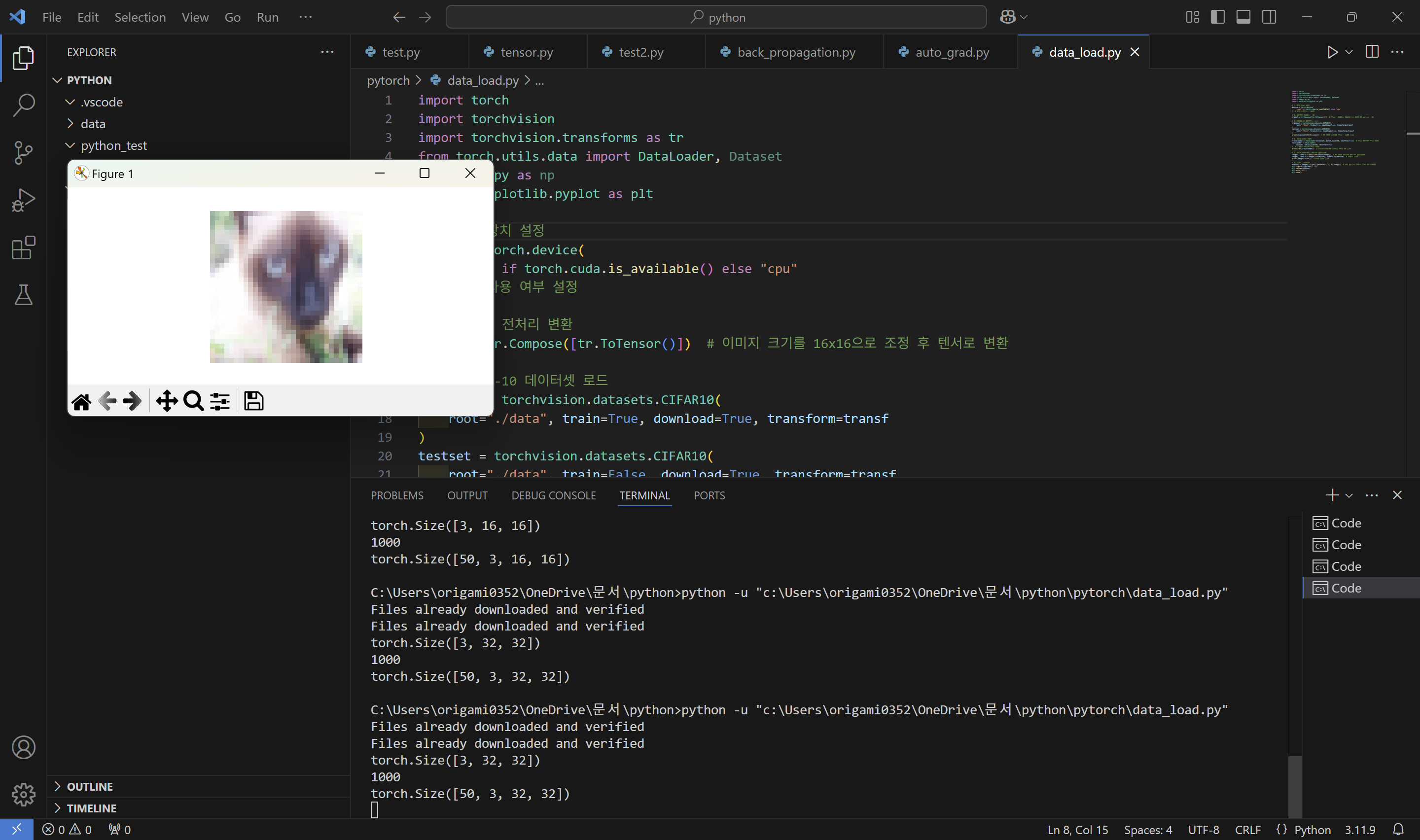학습 데이터와 테스트 데이터를 로드하는 방법과, 이를 PyTorch에서 다룰 수 있도록 tensor 변환 등 전처리하는 방법에 대해 기술한다.